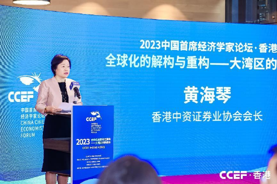 香港中资证券业协会会长黄海琴在致辞时表示,推进粤港澳大湾区建设是推动“一国两制”事业发展的新实践。香港作为国际金融中心服务国家战略的投融资平台,在湾区建设中将发挥越来越多引领带动作用。香港中资证券业协会未来将继续发挥香港中资证券业机构立足香港、背靠祖国、辐射全球的优势,不断推进两地金融市场互联互通深化,助力粤港澳大湾区建设高质量发展,为香港国际金融中心建设作出更大贡献。