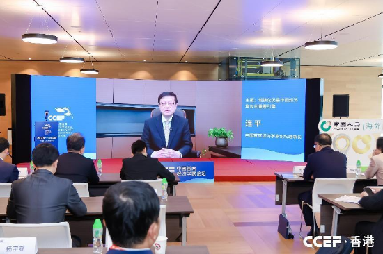 受中国首席经济学家论坛主席夏斌委托,中国首席经济学家论坛理事长连平代表论坛,通过视频为本次活动发来贺词。连平并在题为《城镇化仍是中国经济增长的重要引擎》的主旨演讲中指出,我国城镇化仍有不小的成长空间,将带来经济发展增量动力,带动基建和相关投资的新增需求。未来5—10年加快城镇化发展,须实施两项重要举措,一是在“十四五”和“十五五”时期发行长期国债,直接支持农民落户;二是以制度改革推进宅基地资产化,增加农民财产性收入。