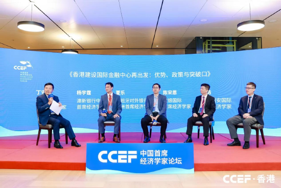 在招商银行首席经济学家丁安华主持下,澳新银行大中华区首席经济学家杨宇霆、西班牙对外银行亚洲首席经济学家夏乐、农银国际研究部主管陈宋恩、国泰君安国际首席经济学家周浩围绕《香港建设国际金融中心再出发:优势、政策与突破口》主题,进行了圆桌讨论。